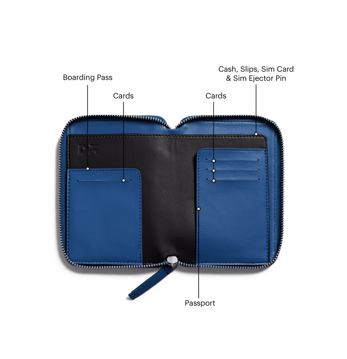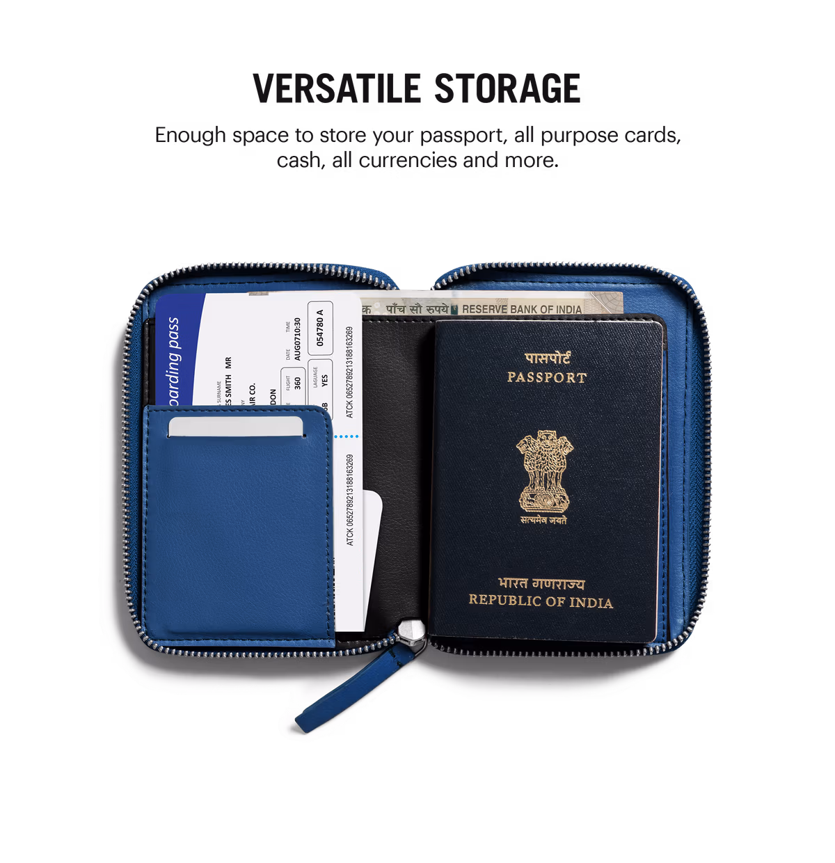 - Full-length compartment for currency & travel documents