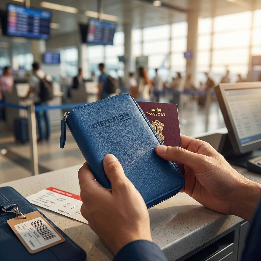 A sleek and secure travel wallet designed to keep all your essentials in one place. Made from premium leatherite with a soft polysuede lining, it ensures durability with a refined finish.